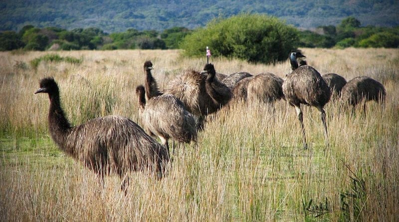 In late 1932, rain finally came, and around 20,000 emus moved from dry inland areas to the farms near the coast for food and water. The emus ate and trampled the wheat crops…one farmer lost 3,000 acres.